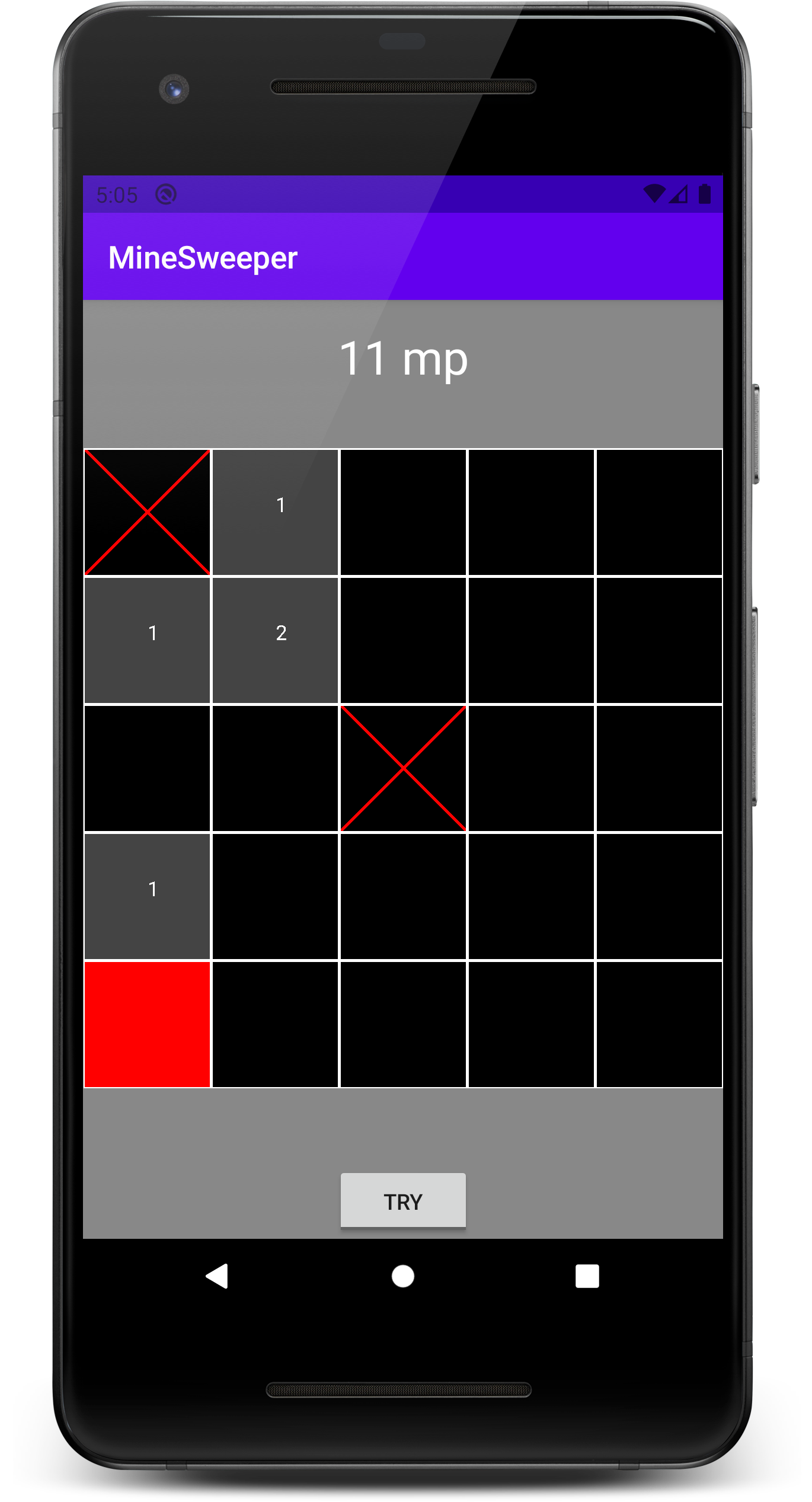 - Ha a megérintett mező alatt bomba van, az legyen egyértelműen jelezve.